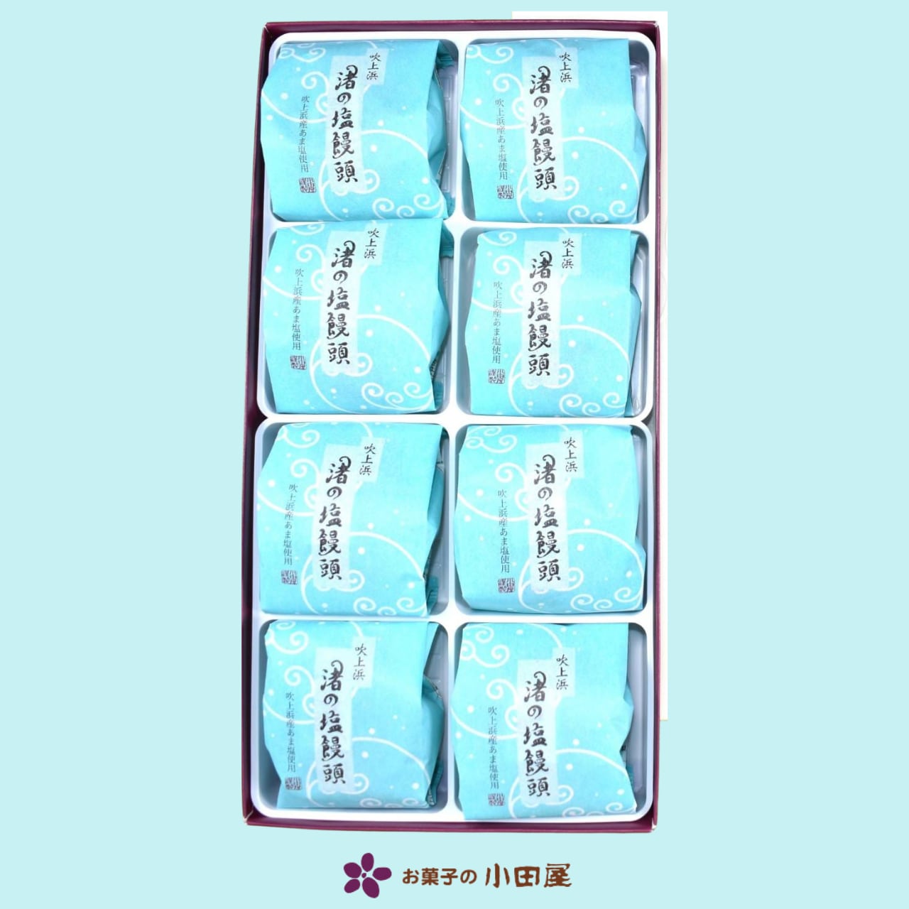 自然を感じる一口で、海辺の扉が開かれるような気持ちにさせてくれる渚の塩饅頭は、一箱に8個入っています。ちょっと一息つきたいときにぴったりのお供です。ご家族やお友達とのお茶の時間にも最適です。ぜひ、渚の塩饅頭で特別なひとときをお過ごしください。
